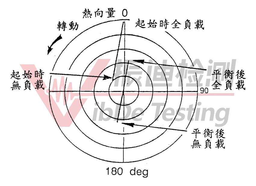 5、热弯曲会使马达不平衡量随负载而变化热向量图